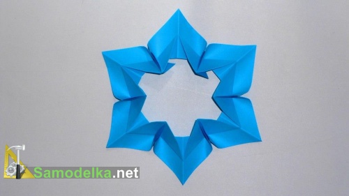 Снежинка — традиционное елочное украшение на праздник Новый год. Сделать такую снежинку очень просто из бумаги, используя технику оригами. Для этого нам понадобится бумага любого размера, в нашем случае 8*8 см. и клей. Всего потребуется 6 листов бумаги из которых мы сделаем не сложные модули.