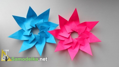 Интересная схема новогодней звезды из бумаги, выполненной в технике оригами. Традиционно на Новый год мы украшаем новогоднюю елку игрушками а также поделками, сделанными своими руками. Сделать бумажную звезду в качестве елочного украшения — очень просто и нам потребуется только бумага — 8 листов размером 8*8 см. и хорошее настроение.